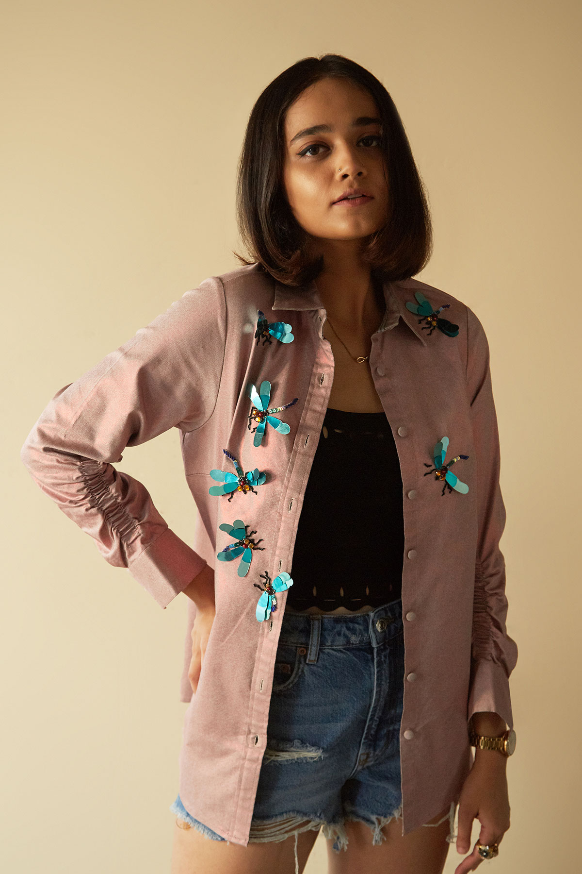 Find the perfect layering piece in this Denim Shirt-Jacket. This beautiful dragon flies embroidered shirt and jacket in one from our collection is a winning combo.